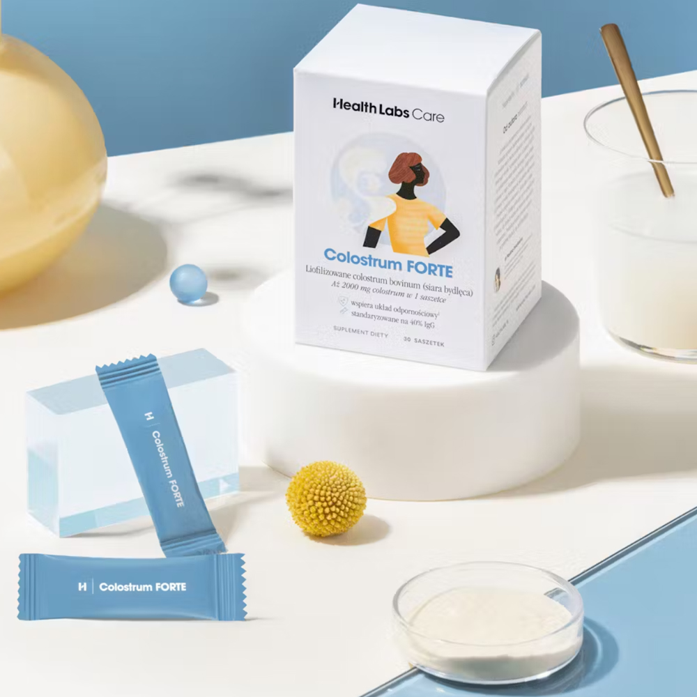 Colostrum FORTE (siara bydlęca) to suplement diety od Health Labs Care, który wspiera Twoją odporność. Jedna saszetka zawiera aż 2000 mg colostrum bovinum.