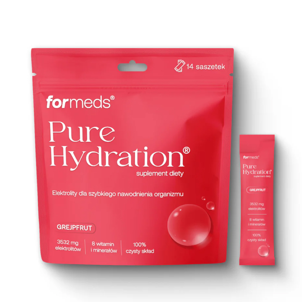 Elektrolity Pure Hydration Grejpfrut od Formeds. Suplement diety w postaci saszetek dzięki, którym przygotujesz nawadniający napój funkcjonalny.