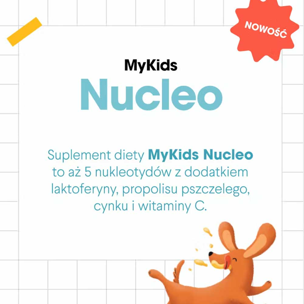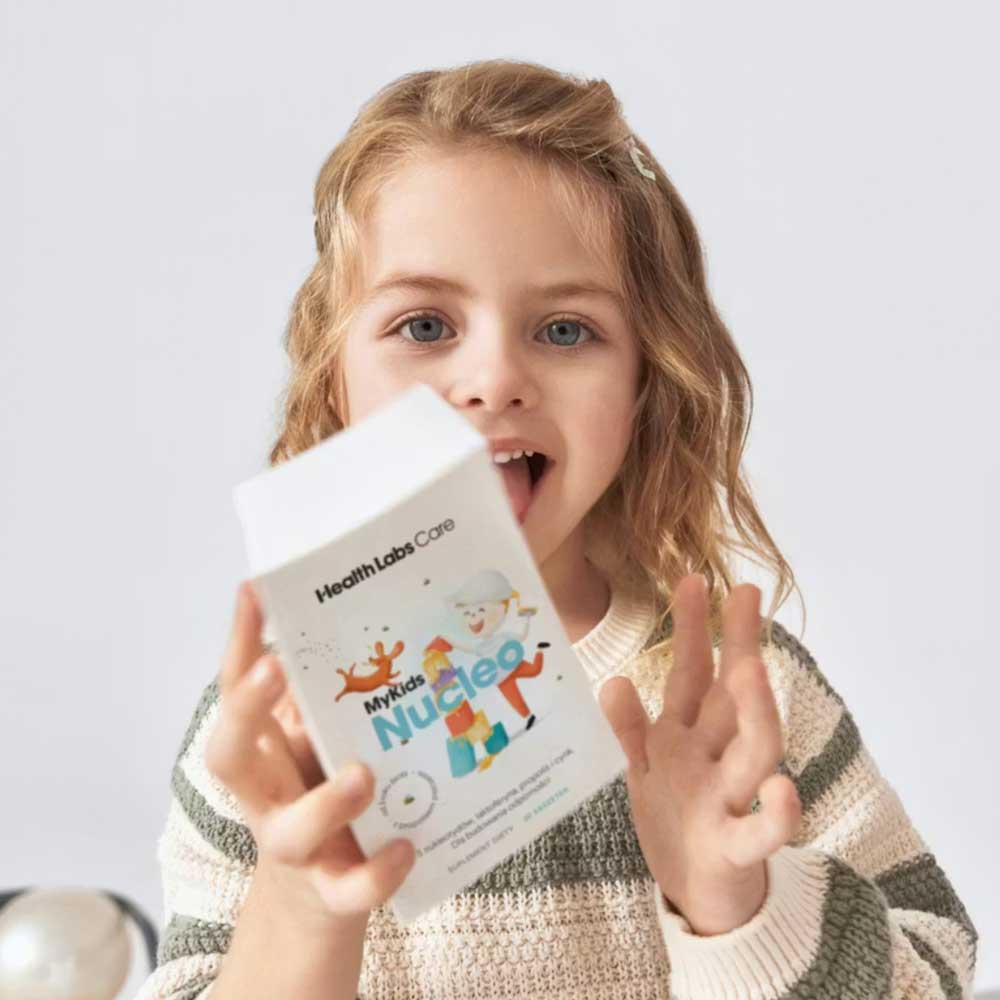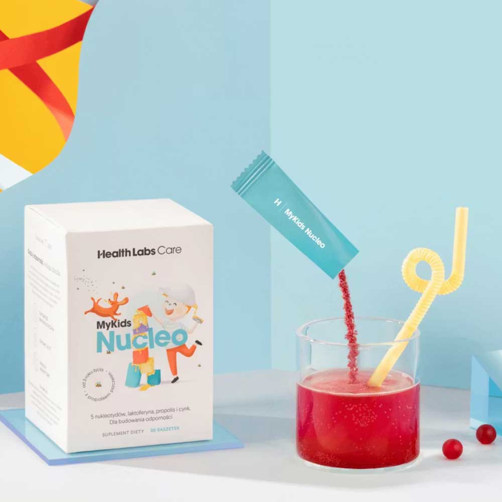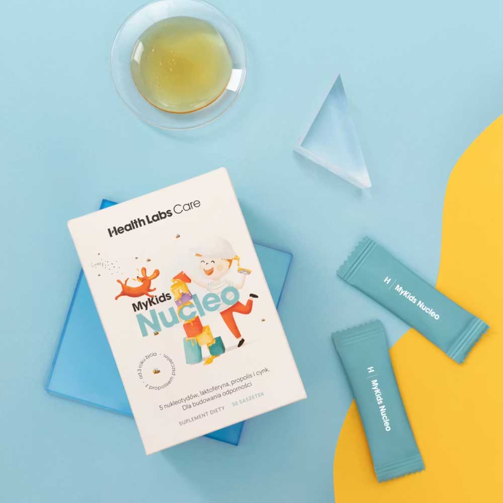 MyKids Nucleo to suplement diety od Health Labs Care gdy chcesz wesprzeć organizm Twojego dziecka po przebytej infekcji oraz wzmocnić jego odporność. Dla dzod 3 roku życia