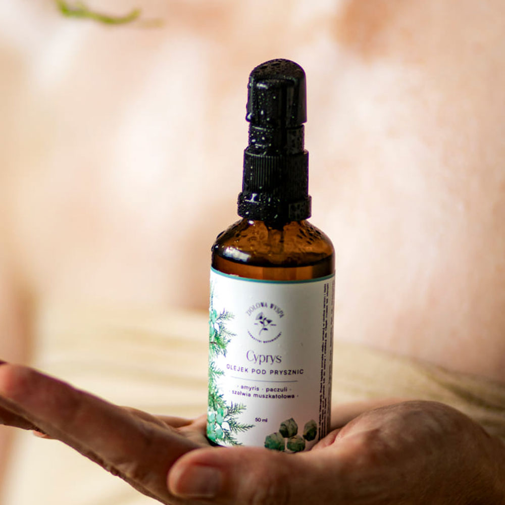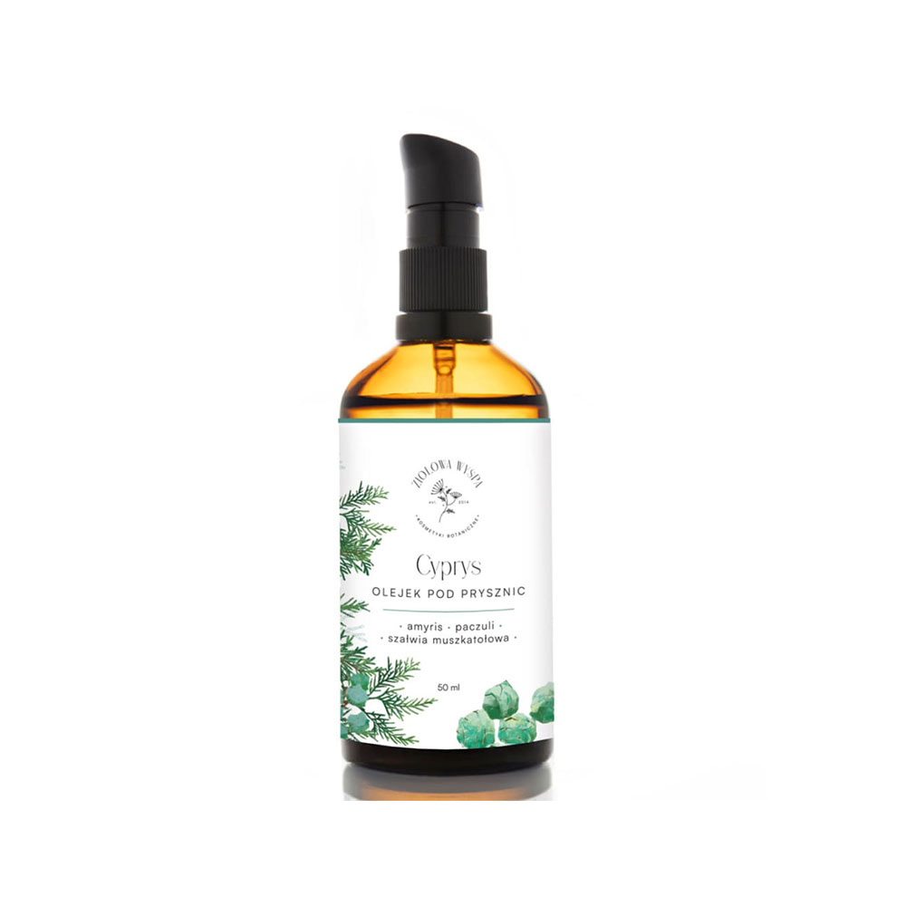 Olejek pod prysznic Cyprys od Ziołowej Wyspy. Odprężający prysznic lub kąpiel w wannie po wymagającym dniu?