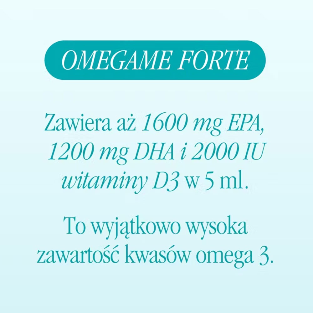- Aż 1600 mg EPA, 1200 mg DHA i 2000 IU D3 w 5 ml